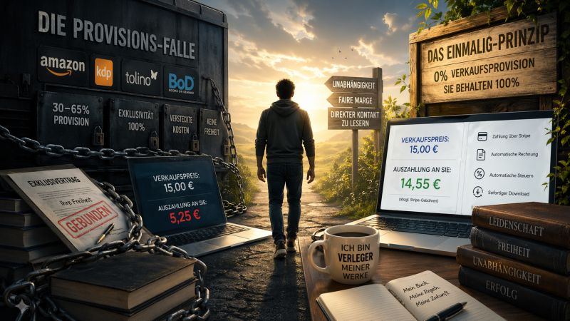 (1) Keine Verkaufsprovision: Der Betreiber erhebt ausdrücklich keine Provision auf die generierten Verkäufe des Autors. 100 % der Netto-Marge (nach Abzug der Stripe-Gebühren) verbleiben beim Autor.